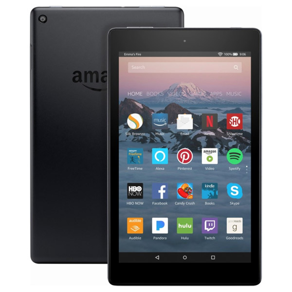 Load up this Amazon Fire HD 8 tablet with your favorite games, shows and books, and keep occupied when flying or riding. The 8-inch screen delivers a dazzling high-definition display, and a front-facing VGA camera offers easy video-conferencing with friends. This Amazon Fire HD 8 tablet is expandable up to 256GB more storage so you can carry your entire library.